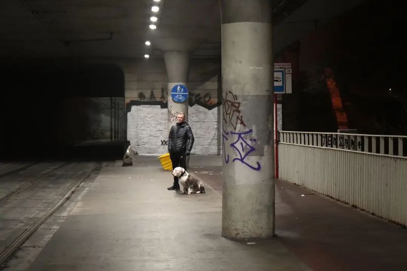 – Я толькі купіў сабе новую камеру і пару аб’ектываў, вяртаўся з Лодзі дадому на Прагу з камерай у заплечніку. З акна трамвая я ўбачыў фактурнага мужыка на прыпынку «Гданьскі мост». У спробе зрабіць з ім пару кадраў я выскачыў з трамвая і стаў яго здымаць. Ад Віслы валіў туман, і аўтафокус не хацеў працаваць і прамахваўся. А я рабіў кадр за кадрам, раздражняючы мужыка, які праз хвіліну дастаў цыгарэту і запаліў. А да мяне дайшло, што нас на начным прыпынку толькі двое. І што я яго так дапёк, што яшчэ імгненне, і ён на мяне спусціць свайго сабаку. Мужык перайшоў на другі бок трамвайнага пуці, дэманструючы ўсім сваім выглядам, што мне трэба завязваць. Я сеў у бліжэйшы трамвай і паехаў дадому. Кадр, па сутнасці, не атрымаўся. Мне трэба было або бліжэй падысці, або працаваць з ручным фокусам, чаго я тады не ўмеў. З колерам таксама бяда. Я яшчэ не ўмеў апрацоўваць фота. Пасля гэтага выпадку я некалькі разоў трапляў у непрыемныя сітуацыі на Празе, калі мужыкі прымушалі мяне фарматаваць дыск. Але ўсе зубы на месцы, і камера таксама цэлая.