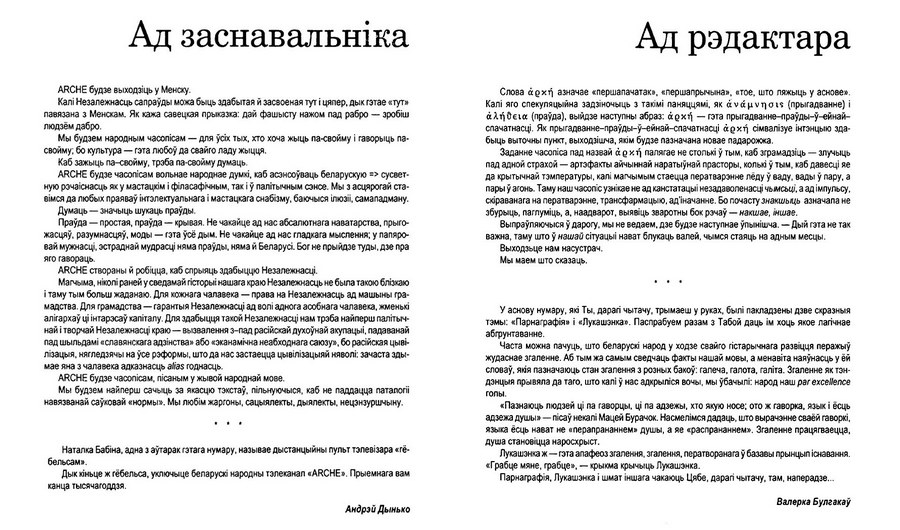 Прапануем вам пабачыць вокладку, а таксама пазнаёміцца з уводнымі словамі ад заснавальніка ARCHE Андрэя Дынька й галоўнага рэдактара Валера Булгакава.