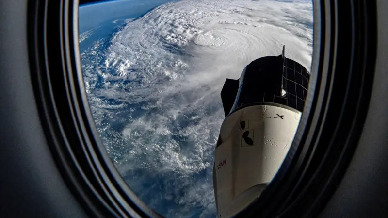 Ураган «Милтон» движется к Флориде — вид с борта корабля Dragon Endeavor, пристыкованного к МКС, 9 октября 2024 года.