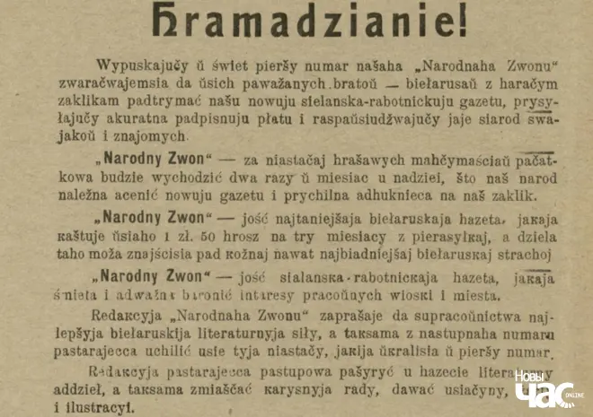 «Абавязкам кожнага беларуса зьяўляецца падтрымліваць свае газэты і часопісы, якія бароняць іх»: аб чым пісала выданне «Народны Звон» 98 гадоў таму