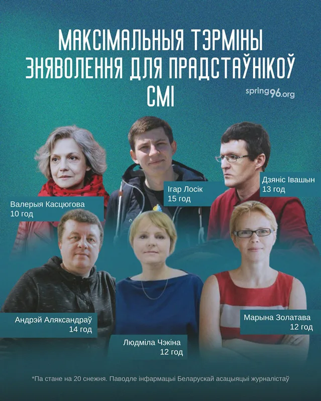 Праабаронцы падлічылі, што сярэдні тэрмін зняволення для беларускіх журналістаў складае шэсць гадоў. Але сярод прадстаўнікоў СМІ ёсць і такія, хто за сваю цалкам легітымную дзейнасць атрымалі вялізныя тэрміны.