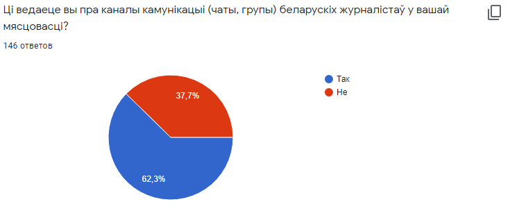 Каментуючы вынікі адказаў на апошняе пытанне хочам падкрэсліць, што ва ўсіх суседніх з Беларуссю краінах нашы калегі стварылі прафесійныя Тэлеграм-чаты для камунікацыі, узаемападтрымкі, атрымання прэс-карт Міжнароднай федэрацыі журналістаў і вырашэння агульных журналісцкіх пытанняў.