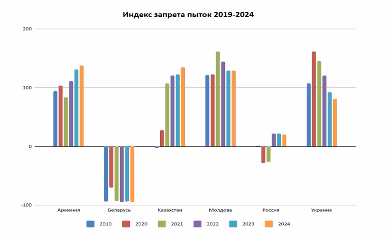 Штогадовыя вынікі вымярэння Індэкса апублічыла Рабочая група па барацьбе з катаваннямі Платформы «Грамадзянская салідарнасць». Беларусь і Расія з’яўляюцца аўтсайдэрамі даследавання, а лідарамі індэкса за 2024 год сталі Арменія і Казахстан, піша Праваабарончы цэнтр «Вясна».