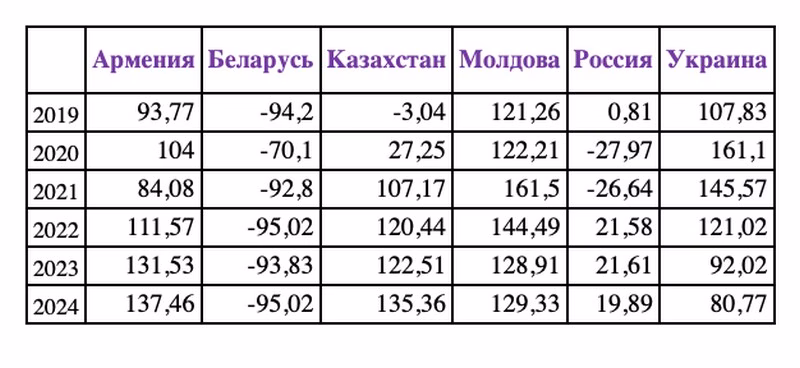 Па выніках 2024 года Беларусь набрала ‑95,02 бала і заняла апошняе, шостае месца, у Індэксе.