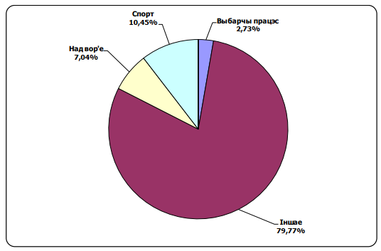 “Радыёфакт” прысвяціў выбарам каля 5 % часу. Спорту — амаль 9 %, а прагнозу надвор’я — крыху больш за 6 % ад агульнага часу.