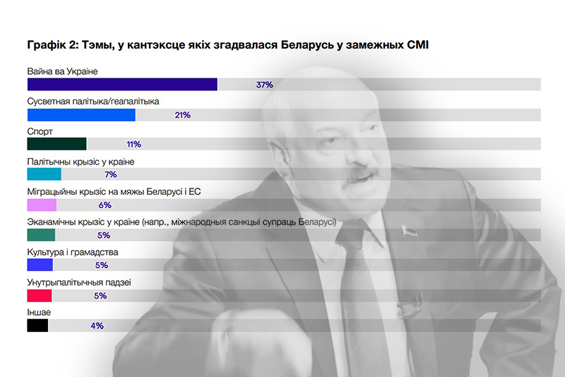 Па назіранні даследчыкаў, найбольш папулярнымі тэмамі ў замежных выданнях у дачыненні да Беларусі сталі: асоба Лукашэнкі, вобраз уладаў/рэжыму, а таксама стасункі Лукашэнкі і Пуціна. То-бок сітуацыя вярнулася да статус-кво, што існаваў у заходніх СМІ да 2020 года.
