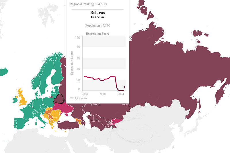 Па ўзроўні свабоды слова Беларусь займае 159‑е месца ў свеце з 161, вынікае са штогадовай справаздачы праваабарончай арганізацыі Article 19.