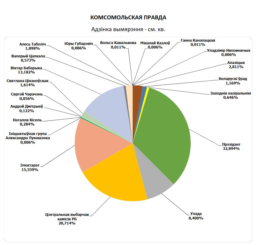 “Комсамольская правда” в Белоруссии”, гэтак жа сама як і “Народная воля”, у шэрагу выпадкаў ставілася да дзеючага Прэзідэнта, ЦВК, улады крытычна. Пазітыўна ацэньвала дзейнасць альтэрнатыўных прэтэндэнтаў сп. Бабарыкі і сп-ні Ціханоўскай.