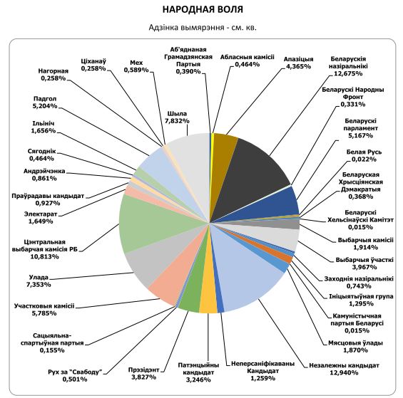 У адрозненне ад tut.by, агульнанацыянальная “Народная Воля” падавала больш кантрастныя (пераважна адмоўныя) ацэнкі дзейнасці ЦВК, улады, дзеючага парламента, Прэзідэнта, выбарчых участкаў і г.д. Разам з тым, канкрэтных кандыдатаў яна ацэньвала галоўным чынам нейтральна.