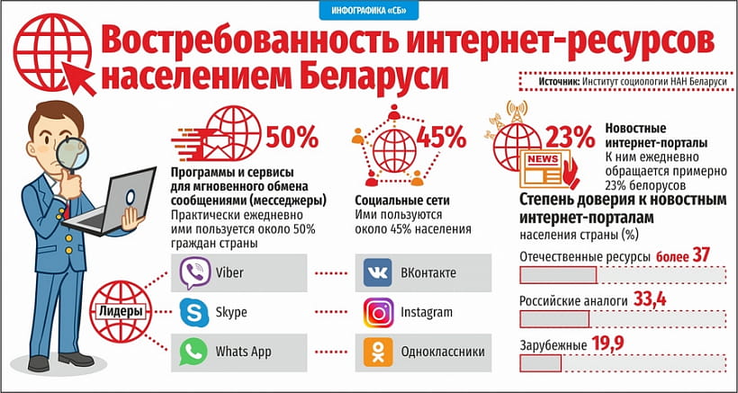 Председатель президиума НАН, академик Владимир Гусаков в материале для «СБ» рассуждает о важности принятия в Беларуси Концепции информационной безопасности. Он приводит данные, согласно которым интернет-ресурсы пользуются наибольшим доверием у населения. Телевидение занимает второе место. Третье — радио и газеты.