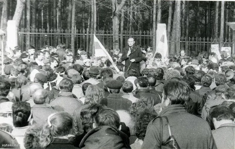 «Дзяды-1988». Перад удзельнікамі акцыі выступае Зянон Пазняк. Фота: vytoki.net