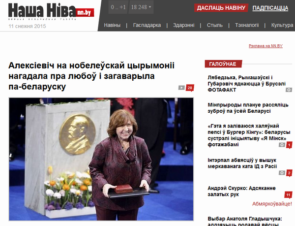 На сайце галоўнага нацыянальнага інфармагенцтва «БелТА» навіна пра ўзнагароджанне Святланы Алексіевіч апынулася ў самым нізе старонкі ў раздзеле “Культура”. Каб убачыць яе, чытачам трэба было зрабіць ажно 13 скролаў уніз.
