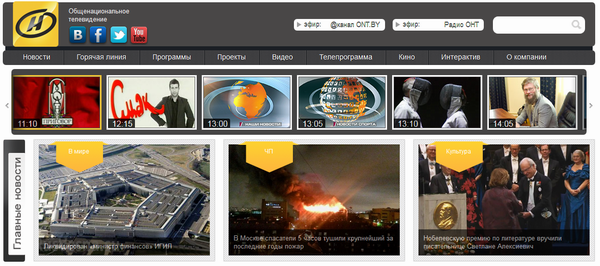 Вельмі адметна на гэтым фоне паказаў сябе тэлеканал “ОНТ”. Інфармацыя пра ўзнагароджанне Алексіевіч выйшла другой навіной выпуску а 20:30 і заняла месца сярод трох галоўных падзей на сайце.