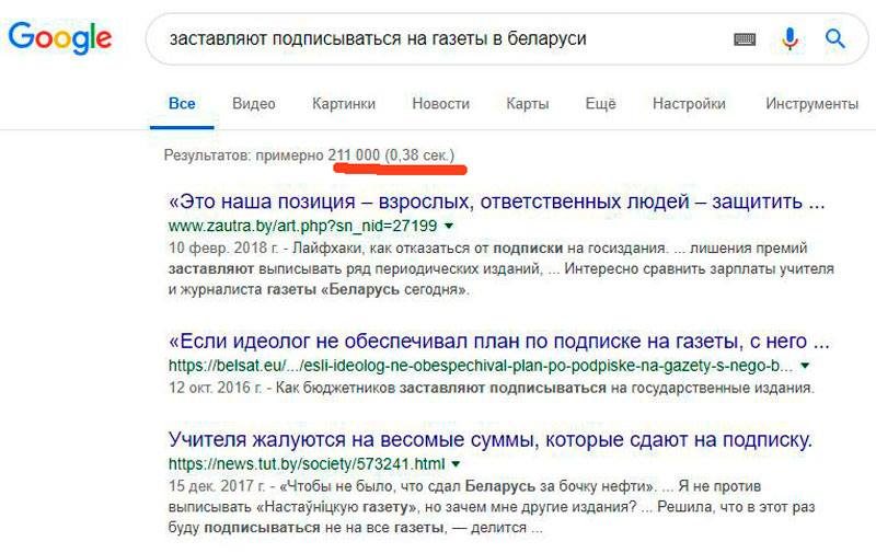 Штогод у падпісны перыяд жыхары Беларусі сутыкаюцца з адвечнай праблемай — прымусовай падпіскай на дзяржаўныя газеты. Прычым, падобныя факты фіксуюцца па ўсёй краіне. Калі набраць у пошуку “прымушаюць падпісвацца на газеты ў Беларусі”, то гугл выдае каля 211 тысячаў запытаў.