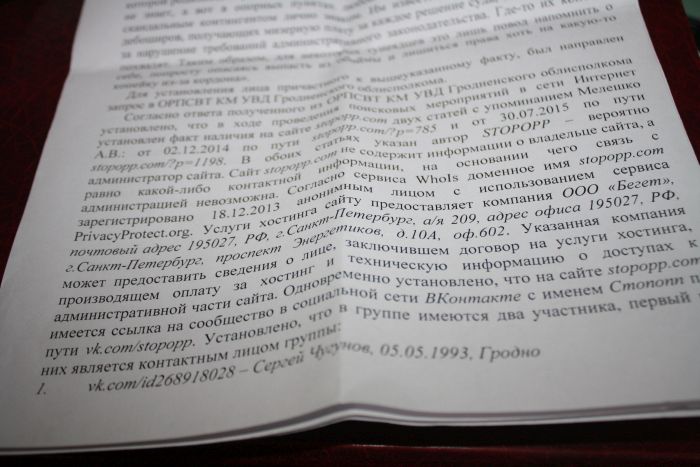 Супрацоўнікі Кастрычніцкага РАУС Гродна высветлілі, дзе хосціцца стронка і хто займаецца адміністраваннем групы Вконтакте, “прывязанай” да гэтага сайта.