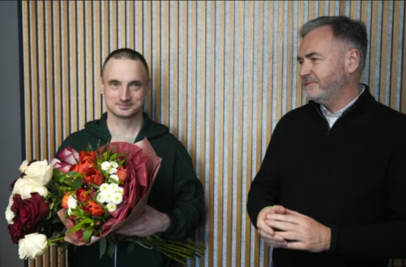 Андрэй Кузьнечык на волі. Вільня, 13 лютага 2025. Фота: Радыё Свабода