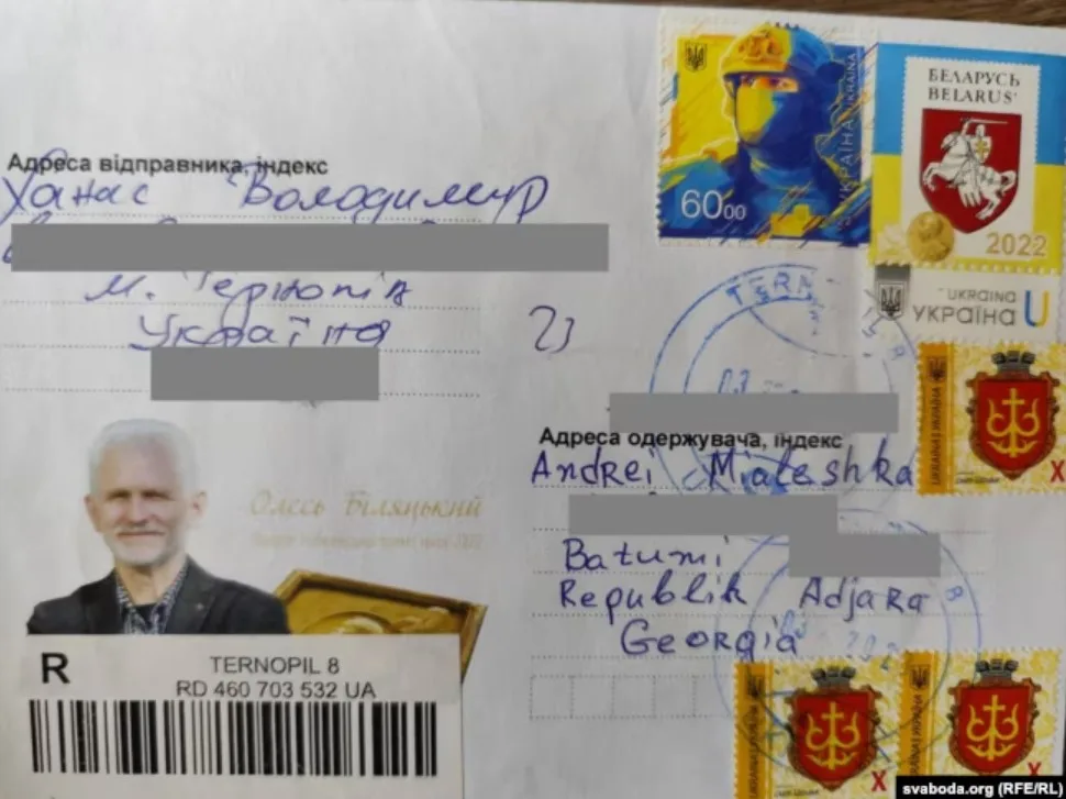 Канвэрт з партрэтам нобэлеўскага ляўрэата Алеся Бяляцкага, выпушчаны ва Ўкраіне
