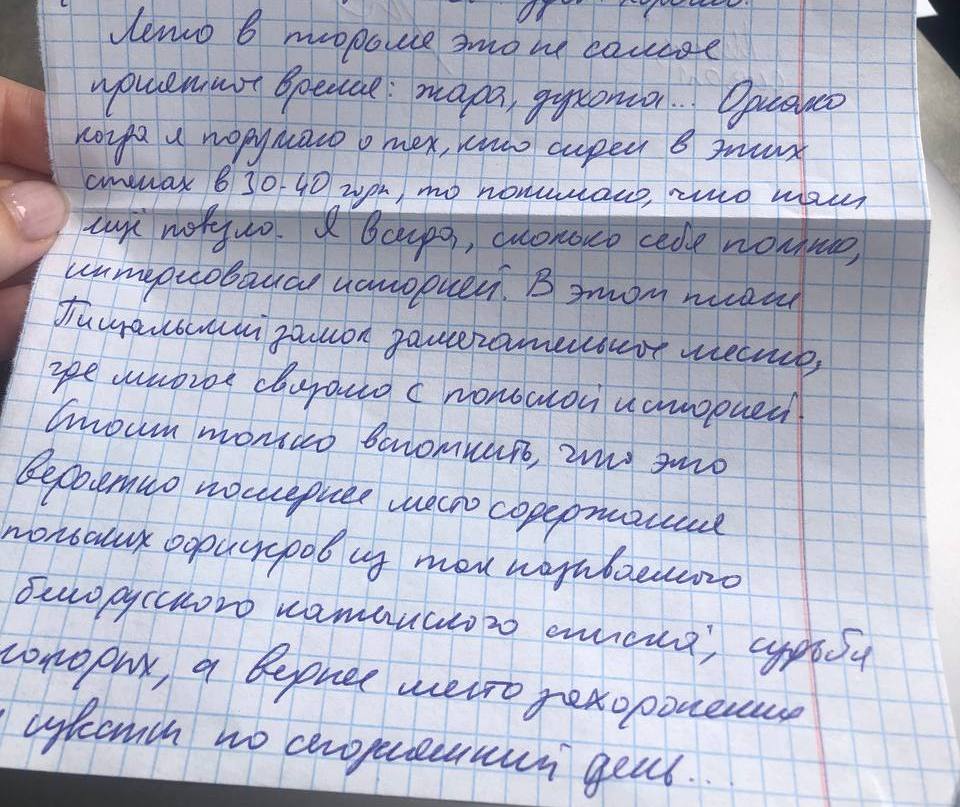 Я всегда, сколько себя помню, интересовался историей. В этом плане Пищаловский замок — замечательное место, где многое связано с польской историей. Стоит только вспомнить, что это, вероятно, последнее место содержания польских офицеров из так называемого белорусского катынского списка, место захоронения которых по сегодняшний день не известно, — піша Анджэй у лісце.