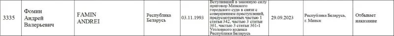 Міністэрства ўнутраных спраў Беларусі 29 верасня абнавіла на сваім сайце «Пералік грамадзян Беларусі, замежных грамадзян або асоб без грамадзянства, якія маюць дачыненне да экстрэмісцкай дзейнасці». Сярод тых, каго дадалі ў гэты спіс, — палітзняволены Андрэй Фамін, асуджаны да 7 гадоў пазбаўлення волі ва ўмовах узмоцненага рэжыму.
