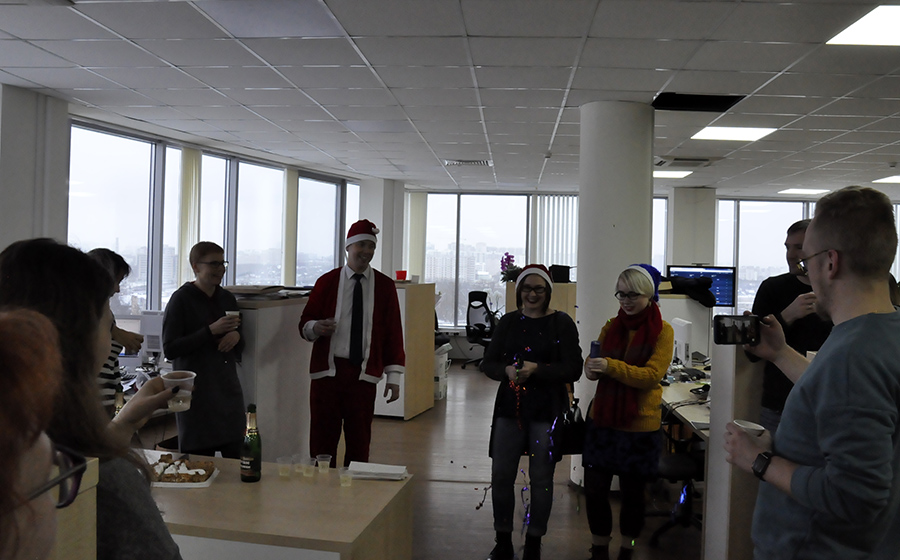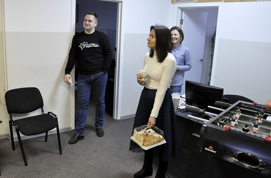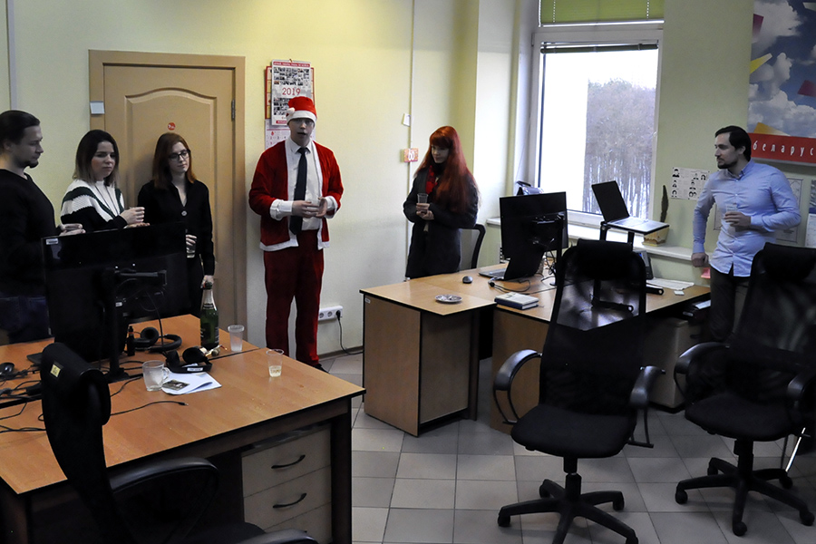 Прадстаўнікі ГА "Беларуская асацыяцыя журналістаў" наведалі рэдакцыі незалежных медыя ў Мінску, каб павіншаваць калег з Новым годам і Калядамі.