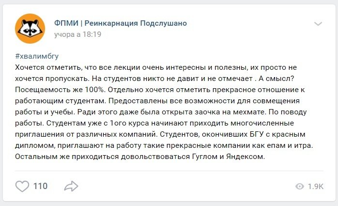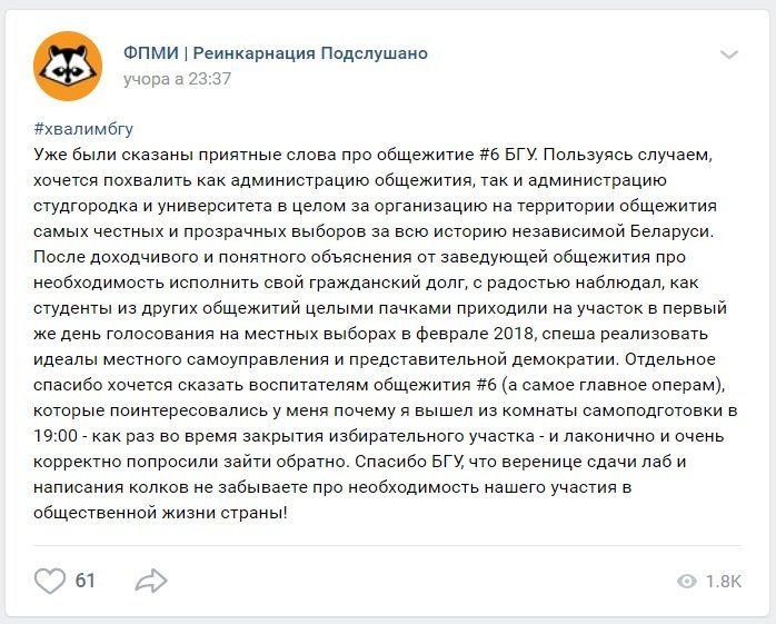 Крэатыўна да такой забароны аднесліся студэнты факультэта прыкладной матэматыкі і інфарматыкі БДУ. На сваёй неафіцыйнай старонцы ў сацыяльнай сетцы Укантакце яны запусцілі флэшмоб «хвалімбду».