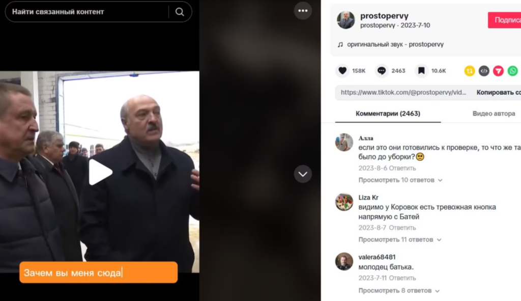 Ролік у TikTok, дзе Лукашэнка разьбіраецца з «абасранымі каровамі», зьняты задоўга да зьяўленьня каналу