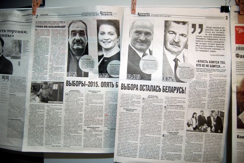 Фота першых палос некаторых беларускіх рэгіянальных газет:
