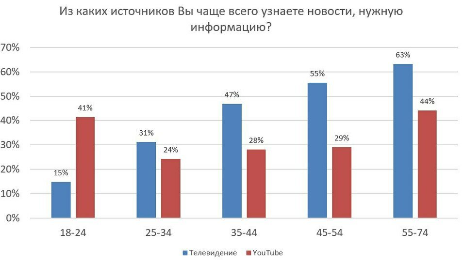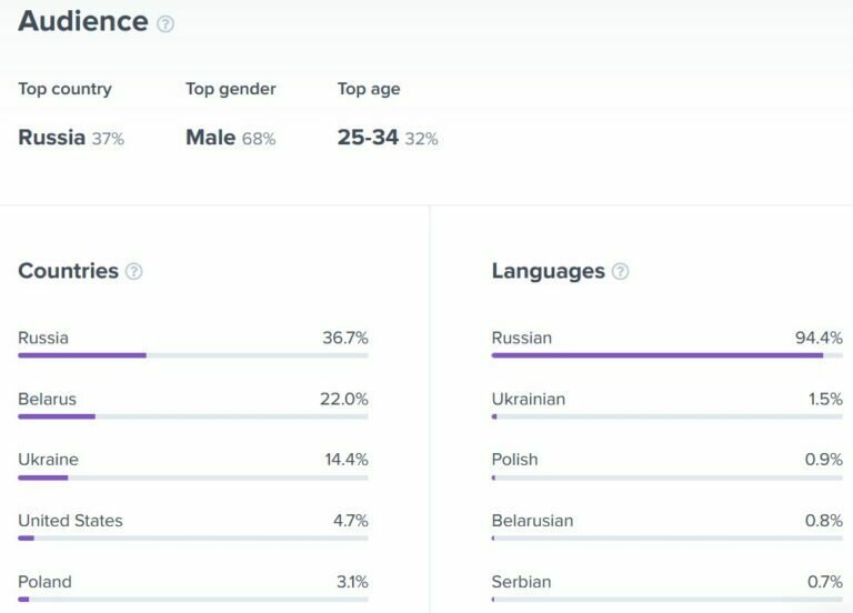 На ютубе ў праўладных тэлеграм-каналаў таксама найбольшая частка аўдыторыі — з Расіі, кажа Міхаіл Дарашэвіч. Так, Information Policy нядаўна прааналізавалі партрэты гледачоў топ-10 беларускіх ютуб-каналаў. Аўдыторыя канала БелТА, які трапіў у рэйтынг, на 36,7% складаецца з расіян (супраць 22% беларусаў), CTV — на 35,3% (супраць 31,9% беларускай долі), канал АНТ мае 36,9% гледачоў з Расіі (з Беларусі — 29,5 %). Пры гэтым незалежныя каналы HEXTA Live, «Рэальная Беларусь», «Белсат», «Маланка медыя» глядзяць у асноўным беларусы.