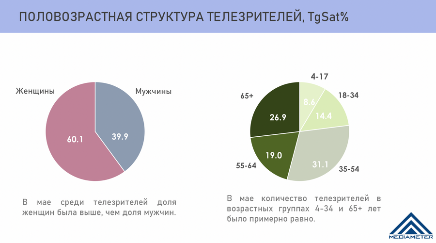 У параўнанні з красавіком у маі колькасць часу, які беларусы правялі за праглядам ТБ, упала (191 хвіліна ў суткі супраць 210), але ў гэта стандартная схема для вясны і лета: чым цяплей, тым менш часу людзі дома.