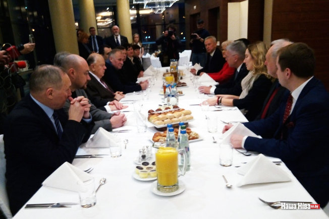 Спатканне адбылося за зачыненымі для рэпарцёраў дзвярыма. Мы папрысутнічалі толькі на яго пачатку. Звярнула ўвагу, што пан маршалак прыехаў у Беларусь са сваёй перакладчыцай — прычым менавіта на беларускую мову.