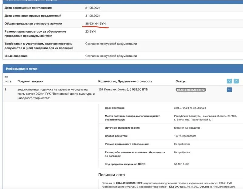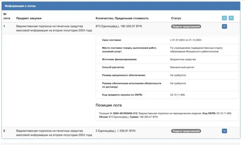 Дзяржаўныя ўстановы Гомельскай вобласці афармляюць падпіску на дзяржаўныя выданні на другое паўгоддзе. Больш за ўсё бюджэтных сродкаў збіраецца накіраваць на гэта “Мазырскі раённы цэнтр па забеспячэнні дзейнасці бюджэтных арганізацый у сферы адукацыі”: 181 585 беларускіх рублёў.