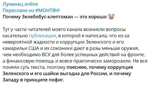 Тэлеграм-канал раённай газеты «Лунинец online» асабліва ўразіў у горшым сэнсе гэтага слова. Ну добра, няхай не злічыць адсылак да «Пула першага». Нават не здзіўляюць адсылкі да ўсіх выкрывальніцкіх «дакументальных» шэдэўраў ад АНТ і аўтарскіх праграм прапагандыстаў беларускага тэлебачання (хоць Салаўёва не прымусілі глядзіць, і на тым дзякуй).