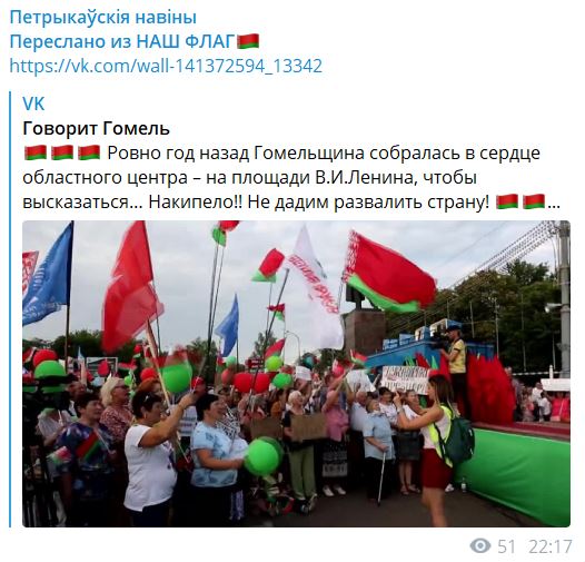 Сам «Гаворыць Гомель» збірае па 1–2 лайкі пад сваімі публікацыямі, але рукі не апускае, таму што лозунг канала «Праўда, хейт і гумар». Як адно з іншым спалучаецца і адкуль што паходзіць, складана растлумачыць. Але «Петрыкаўскія навіны» спраўна «падкармліваюць» сваіх чытачоў выкідамі вось такога рэсурса.