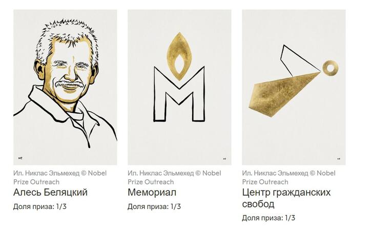 Нарвежскі нобелеўскі камітэт сёння аб'явіў у Осла лаўрэатаў Нобелеўскай прэміі міру за 2022 год. Імі сталі беларус Алесь Бяляцкі і прадстаўнікі праваабарончых арганізацый «Мемарыял» з Расіі і «Цэнтр грамадзянскіх свабод» з Украіны. Гэта другая Нобелеўская ўзнагарода за гісторыю Беларусі. Першую ў 2015 годзе атрымала пісьменніца Святлана Алексіевіч.