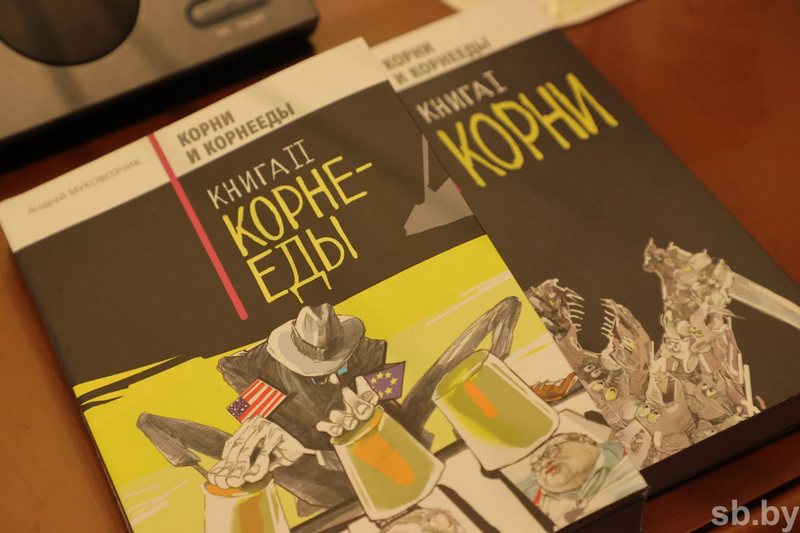 Нараджэнец расійскага Навасібірска Андрэй Мукавозчык наваяў аж цэлы двухтомнік – “Корни” і “Корнееды” адпаведна. Гэта збор “аналітычных разважанняў” пра апанентаў рэжыму і “гістарычную місію” Лукашэнкі. Скандальны “стэндапер” некалі выйшаў з “Клубу вясёлых і знаходлівых” і дагэтуль ўпэўнены, што сваімі палітычнымі пасквілямі зрывае апладысменты публікі. А паколькі паўстаць “феніксам” на руінах КВЗ так і не ўдалося, прыйшоўся своечасовай прапагандысцкай “затычкай” на старонках “Советской Белоруссии” і ў эфіры паднявольнага саўбелаўскаму холдынгу “Альфа радыё”.