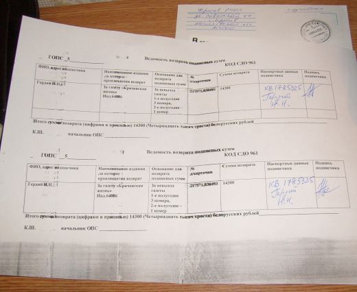 Разам з тым, начальніца РУПС спадарыня Іванова паведаміла Гердзію, што яму вернуць грошы ў памеры 14 300 рублёў за чатыры недаатрыманыя ў 2015 годзе нумары “Крычаўскага жыцця”. У той жа дзень, 21 студзеня, супрацоўнікі “Белпошты” пад роспіс перадалі грошы журналісту.