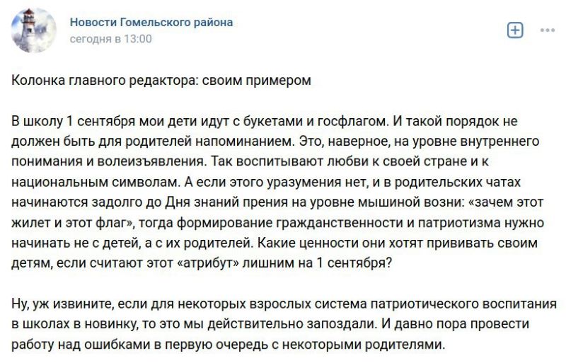 С цветами и госфлагом: так редактор газеты Гомельского райисполкома требует приходить школьникам на 1 сентября