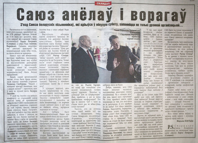 Сакратарыят ГА «Саюз беларускіх пісьменнікаў» пасля шматлікіх зваротаў сяброў арганізацыі, абураных публікацыяй Марыны Коктыш «Саюз анёлаў і ворагаў» у «Народнай волі» №19 ад 7 сакавіка, звярнуўся са зваротам у Камісію па этыцы Беларускай асацыяцыі журналістаў.