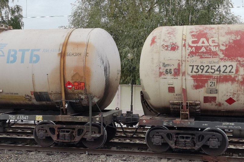 У Кіеў едзем чыгункай. Цягнік «Інтэрсіці +» часам ляціць хутчэй за 150 кіламетраў у гадзіну… На адной з прамежкавых станцый на супрацьлеглым пуці заўважаю цыстэрны са знаёмым лагатыпам «БЧ».
