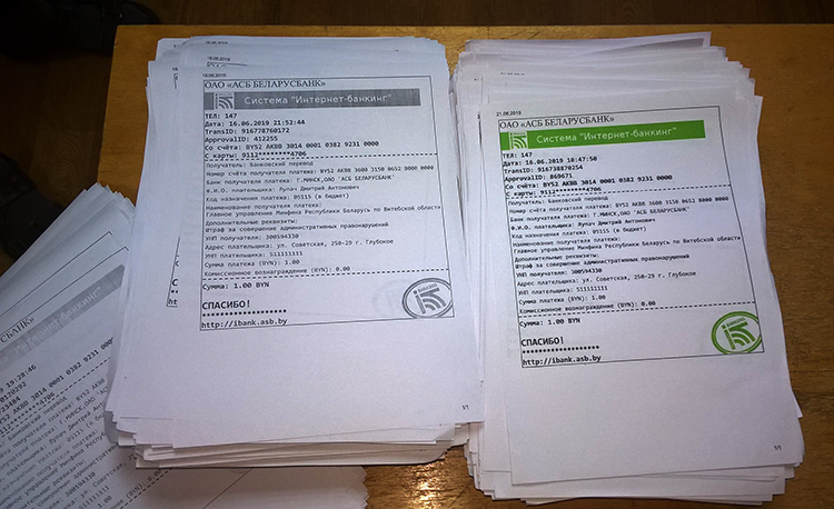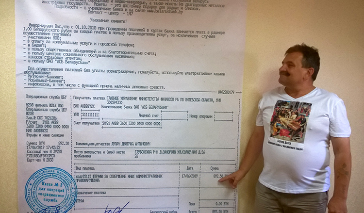 Зміцер Лупач троліць сістэму: аплачвае штраф па адным рублі і фатаграфуецца на фоне квітанцый