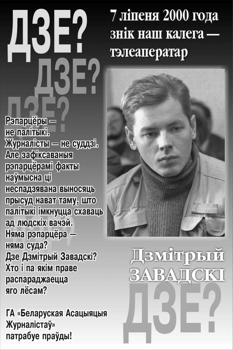 Дзмітрый Завадскі, аператар расійскага тэлеканала «ОРТ», знік без вестак 7 ліпеня 2000 г. Ён паехаў у аэрапорт «Мінск‑2» сустрэць свайго калегу — журналіста Паўла Шарамета. Аднак на стаянцы аэрапорту Шарамет знайшоў толькі пустую машыну Завадскага.­­