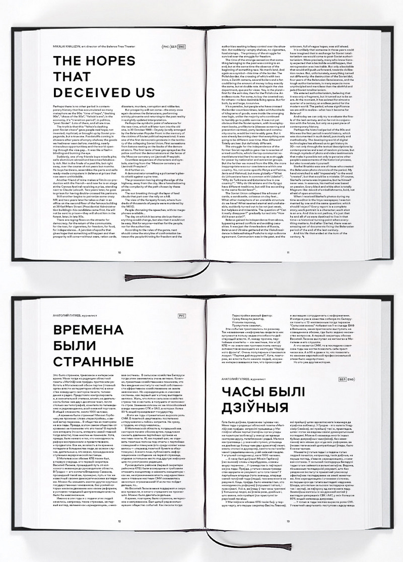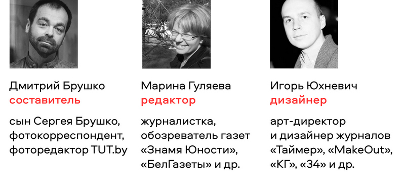 Помимо фотографий, в книгу вошли воспоминания десяти белорусов: Валентин Акудович, Владимир Колос, Николай Халезин, Анатолий Гуляев, Андрей Вардомацкий, Валерия Костюгова — расскажут свои истории, связанные с тем временем. Все тексты и подписи в книге выйдут на белорусском, русском и английском языках.