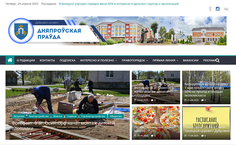 Скрыншот сайта газеты «Дняпроўская праўда»
