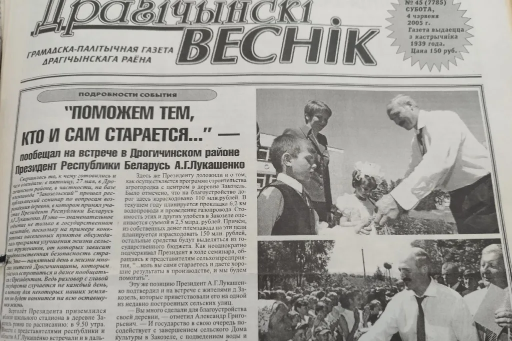 Архіўны нумар «Драгічынскага весніка» з артыкулам пра візіт Лукашэнкі. Фота: drogichin.by