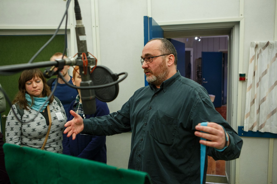 — На Шведскім радыё няма падзелу на гукаінжынераў і гукарэжысёраў (саўнддызайнераў), таму тэхнічным бокам займаецца звычайна адзін чалавек. Але залежыць ад праекта, бывае што над пастаноўкай працуе і два, і тры “тэхнікі”. Акрамя таго, ёсць асістэнт рэжысёра, які адказвае за гукавыя эфекты, рэквізіт, шукае патрэбную музыку і г.д.
