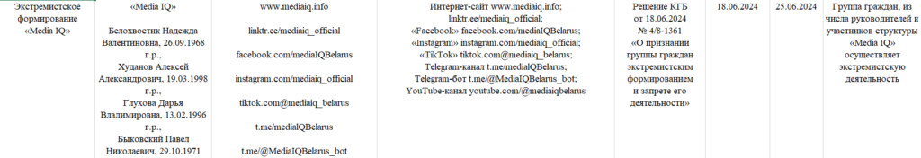 У пералік «экстрэмісцкіх фарміраванняў» на сайце Міністэрства ўнутраных спраў Беларусі 25 чэрвеня былі ўключаныя праект «Media IQ» (сайт разам з афіляванымі сацсеткамі і месенджарамі) і ініцыятыва «Обычное утро», якая пазіцыянуе сябе як «шоў для беларусаў».