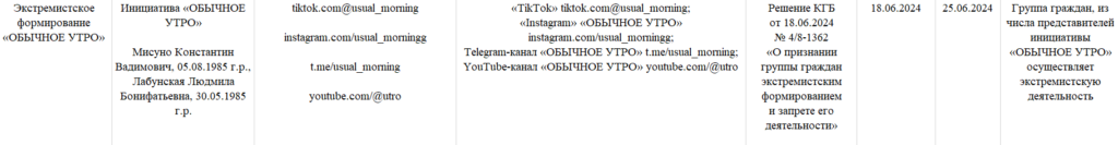 Да «экстрэмісцкай дзейнасці» ініцыятывы «Обычное утро», паводле КДБ, маюць дачыненне Канстанцін Місуна і Людміла Лабунская.