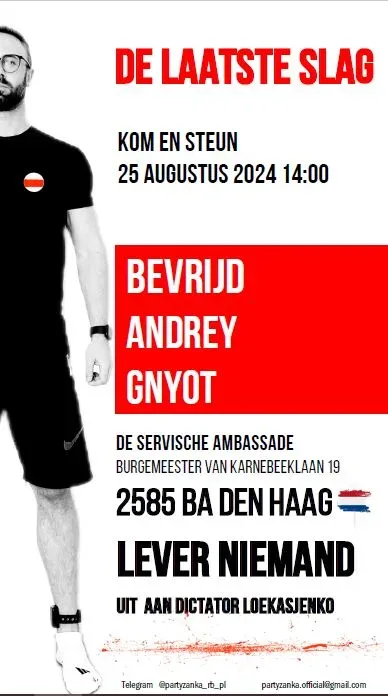 25 жніўня ў Гаазе, насупраць амбасады Сербіі, пройдзе акцыя пратэсту супраць выдачы Андрэя Гнёта беларускім уладам.