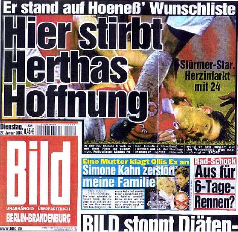 “Так памірае надзея Герты” (берлінская футбольная каманда, адзін з удзельнікаў якой памёр ад інфаркту на полі).