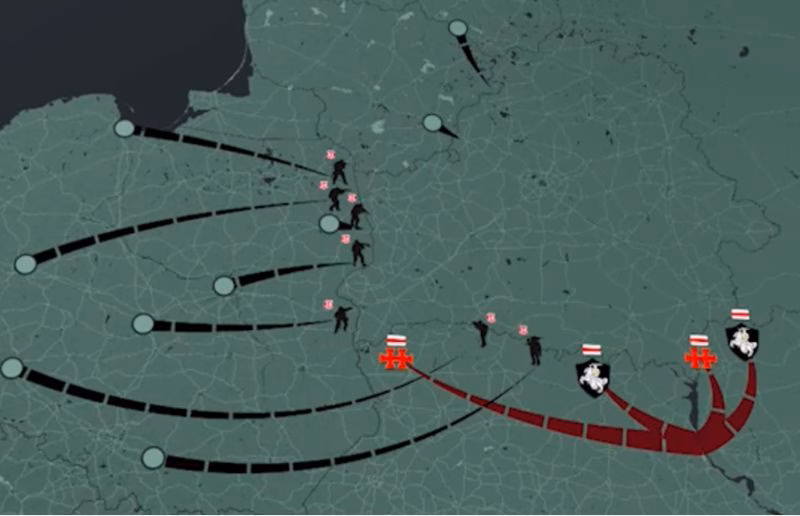 Во всех упомянутых материалах и речах прием внушения идентичен: «доказательство» существования плана вторжения существует лишь на словах. Еще один мощный «аргумент» — изображение карт со стрелками, «откуда готовилось нападение».